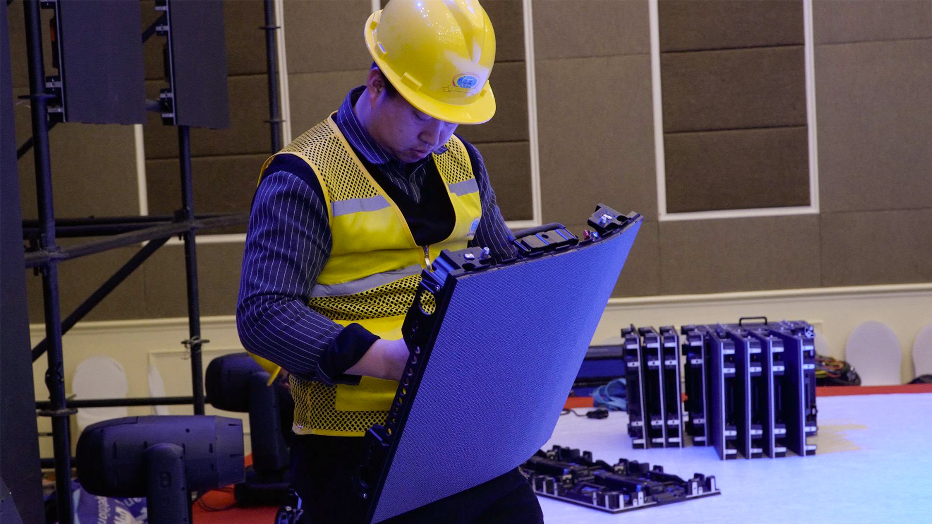 (工人搭建屏幕中图)