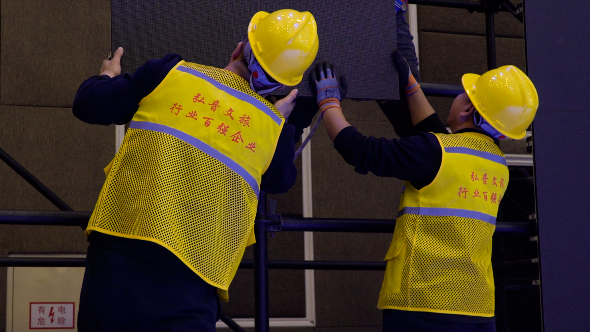 (工人搭建屏幕中图)