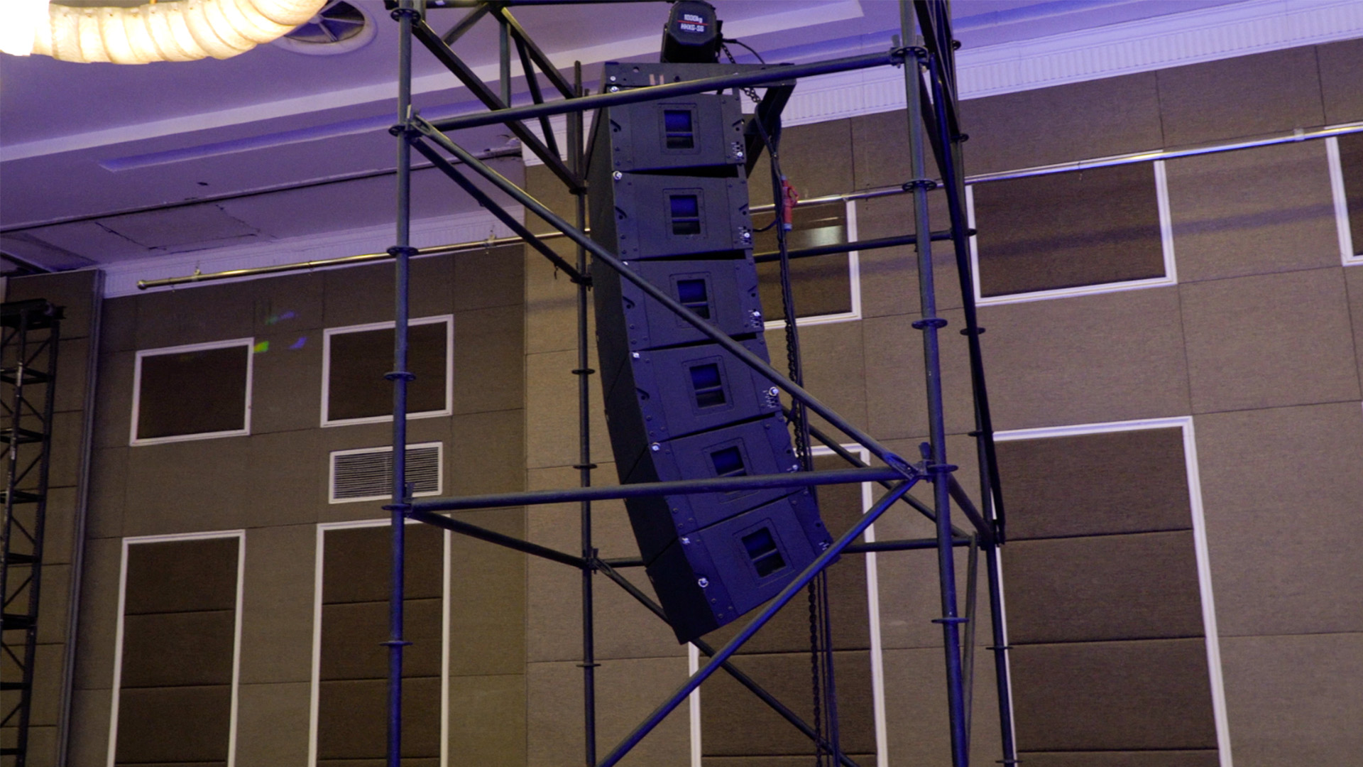 (工作人员挂起音箱图)